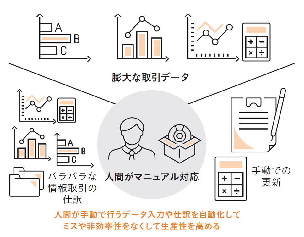 企業の顧客サポートセンターでは、大量の顧客問い合わせに対して、人間のオペレーターが個別に対応しています。これには電話対応、メール返信、チャット対応などが含まれます。すでに大量の顧客対応データが存在しているため、これを活用してAIチャットボットや音声応答システムを導入することで、自動化が可能ですが、それらが結合されていないとAI は活用できません。また、問い合わせや記録を人間のオペレーターが手動で処理しているためデータの統一性がなくAIに提供できないため、生産性が高まりにくいです。