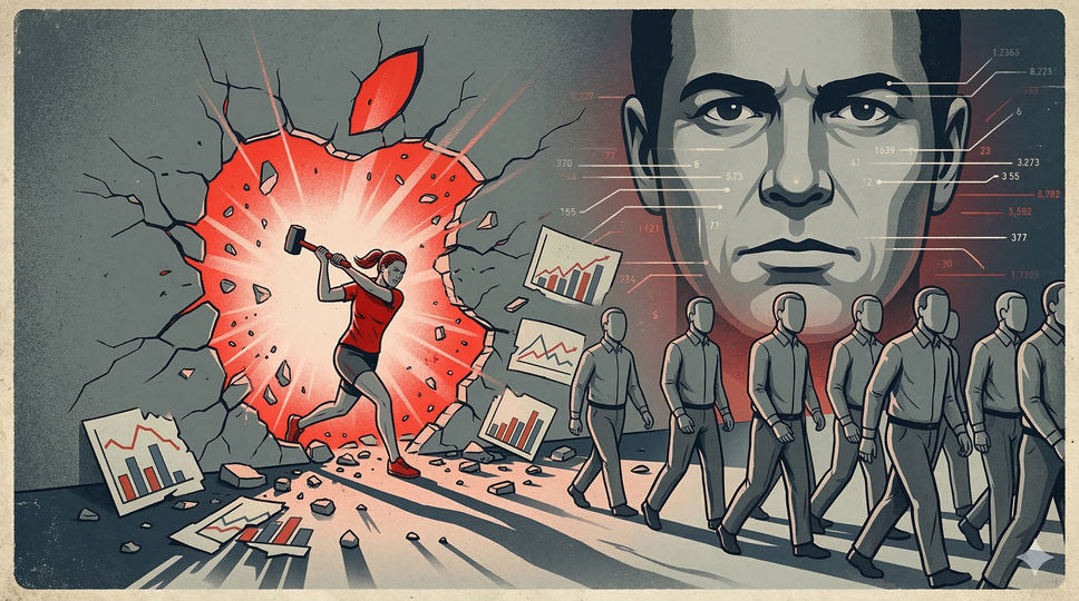 まず、アップルのテレビCMで伝説的な「1984」に関する事実を見てみます。当時の新型パソコン「マッキントッシュ」の発売に合わせて発表されたこのテレビCMは、1984年1月22日に開催された「第18回スーパーボウル」で9000万人の視聴者に対して放映され、大反響を呼びました。