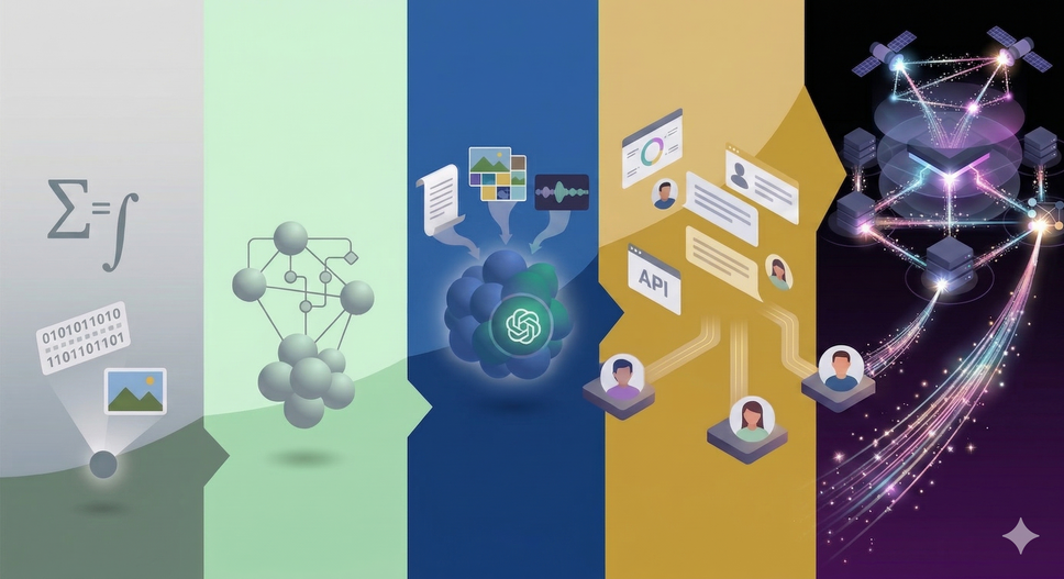 この31の出来事を俯瞰すると、生成AIは以下の5段階で質的転換を繰り返してきたことがわかります。