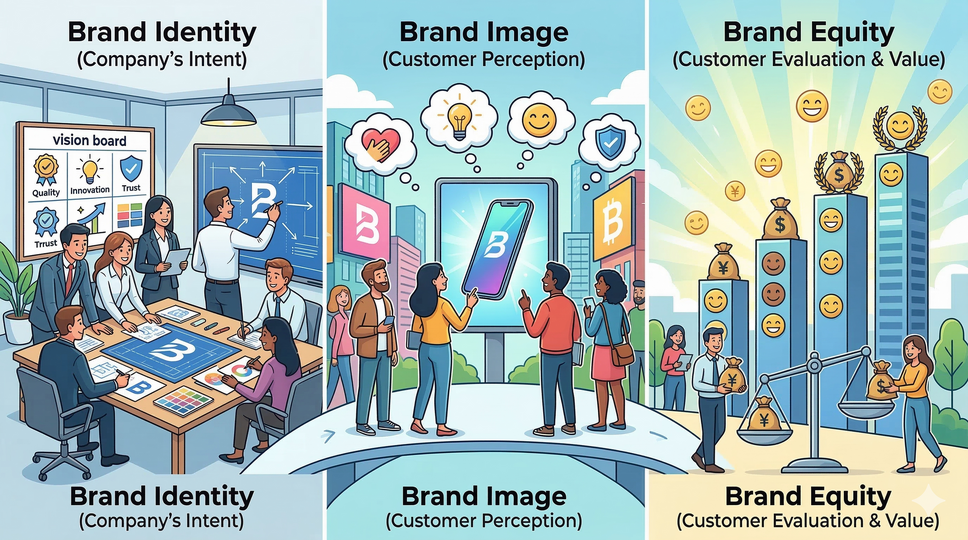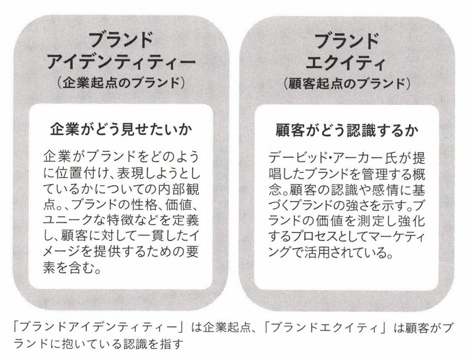 ブランドアイデンテイティーは「企業がどう見せたいか」に関するものであり、ブランドエクイティは「顧客がどう記憶しているか、感じているか」に関するものであることを最初にご理解いただきたいです。これらの言葉は、よく混同されて使われています。