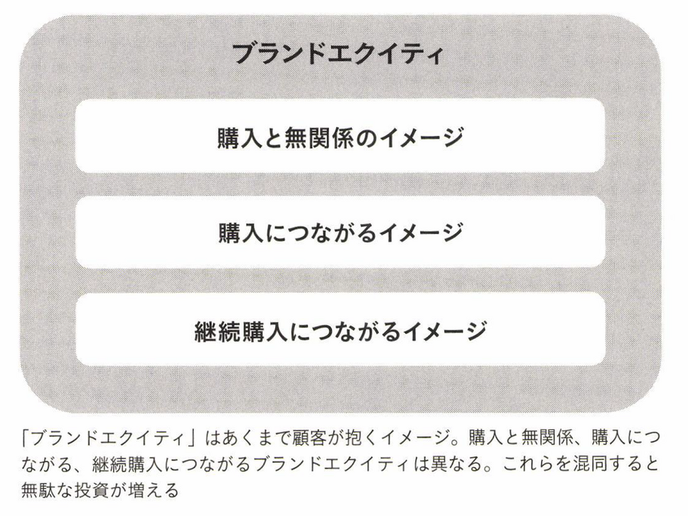 ブランドエクイティは顧客から見たブランドに対するイメージ認識にすぎません。それを強化すると、売り上げが増えることはあるかもしれませんが、必ずしもそうとも限りません。顧客が認識しているイメージであってもそれは、購入と無関係のイメージかもしれないからです。